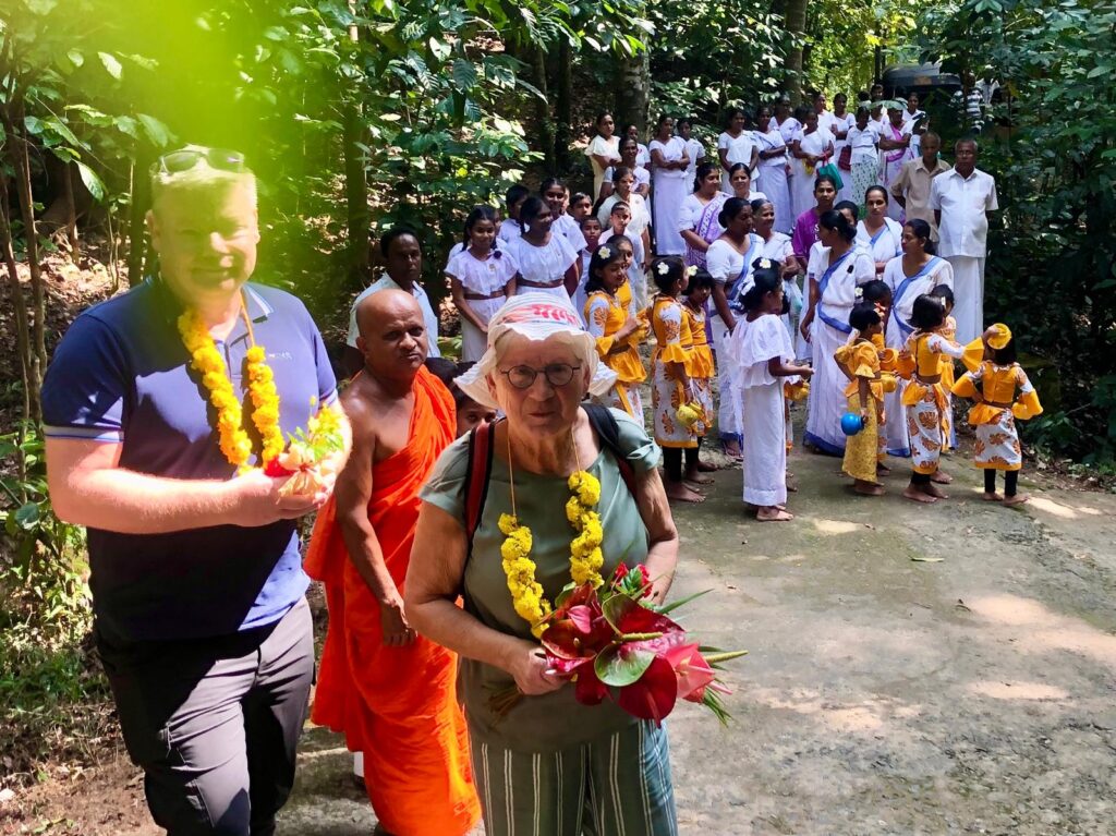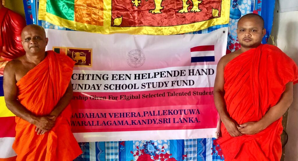 Deze actieve monnik werkt in een dorpsgemeenschap van kleine boeren en theeplukkers in de bergen nabij Kandy. Het is altijd een toer om er over de kleine bergweggetjes te komen, vooral nu nadat aardverschuivingen de doorgang hadden geblokkeerd. Wij helpen de monnik met een jaarlijkse bijdrage voor zijn zondagsschool. Hij had voor ons bezoek een ‘Price giving’ georganiseerd, met toespraken, dansjes en de uitreiking van schoolmateriaal. Voor Gert de eerste keer dit mee te maken. Voordat we zijn tempel verlieten, wees de monnik ons nog op de door ons jaren geleden gedoneerde computers, die nodig vervangen moeten worden…
